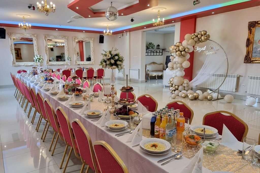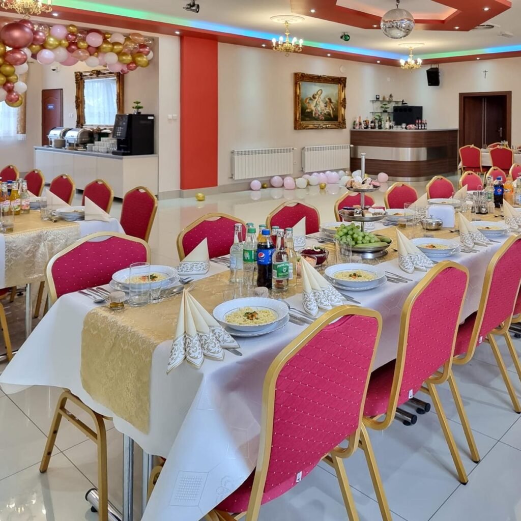 Nasze sale zostały stworzone z myślą o wyjątkowych chwilach w gronie najbliższych. Elegancki wystrój, wygodny układ stołów i kameralna atmosfera sprawiają, że każde przyjęcie komunijne jest nie tylko uroczyste, ale i pełne rodzinnego ciepła. Dysponujemy przestrzeniami, które pomieszczą nawet 200 osób, jednak na tego typu przyjęcia najczęściej wybierane są nasze mniejsze sale – idealne dla rodzinnych spotkań. Wszystko możemy dopasować do Twoich potrzeb, aby ten dzień był dokładnie taki, jak sobie wymarzysz.